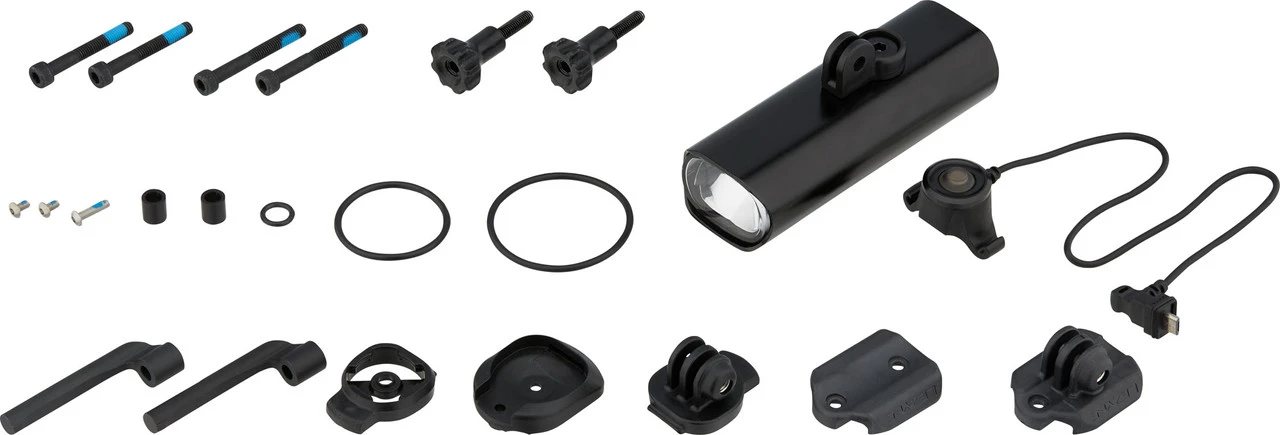Lieferumfang:1 x Frontlicht Lezyne Lite Drive Pro 115 Reverse1 x Fernbedienungsschalter Lezyne LED Remote Switch1 x GoPro-Einsatz1 x GPS-Einsatz2 x Rändelschraube2 x Schraube M3 x 5 mm1 x Einsatz-Platte1 x GoPro-Bodenplatte1 x GPS-Bodenplatte1 x Schraube M3 x 12 mm1 x Unterlegscheibe2 x Haltearm2 x Vorbau-Abstandhalter 9 mm2 x Vorbau-Schraube M5 x 35 mm2 x Vorbau-Schraube M5 x 40 mm1 x O-Ring klein1 x O-Ring groß