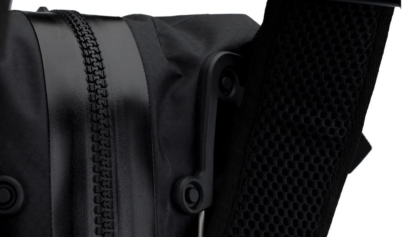Der ORTLIEB Atrack BP Rucksack ist die Bikepacking-Variante der Atrack-Rucksackfamilie und zeichnet sich aus durch kluge Details für Radfahrer. Dazu gehören beispielsweise eine Helmhalterung, der reduzierte Hüftgurt ohne Hüftflossen und ein kompaktes Rückenpolster, das für Bewegungsfreiheit sorgt. Das verwendete Material ist wasserdicht, robust und abriebfest und somit perfekt für den Outdoor-Einsatz geeignet. Durch die besondere Lage des wasserdichten TIZIP-Reißverschlusses, der sich während des Tragens an Deinem Rücken befindet, bleiben Tragesystem und Schulterträger beim Öffnen sauber und unerwünschtem Zugriff wird vorgebeugt. Auch das sonst übliche Herumwühlen nach den untersten Sachen entfällt, zusätzlich sorgen im Inneren vier Innentaschen und ein Kompressionsgurt für übersichtliche Organisation. Außerdem kannst Du optional ein Trinksystem darin befestigen; für Deinen Trinkschlauch ist ein hermetischer Durchlass vorhanden. An den Daisy Chains lassen sich weiteres Zubehör oder Kompressionsgurte anbringen. Das Rückensystem ist stufenlos höhenverstellbar, die ergonomischen Schulterträger sind mit einem Brustgurt ausgestattet und den Hüftgurt kannst Du abnehmen, wenn Du ihn nicht benötigst.
