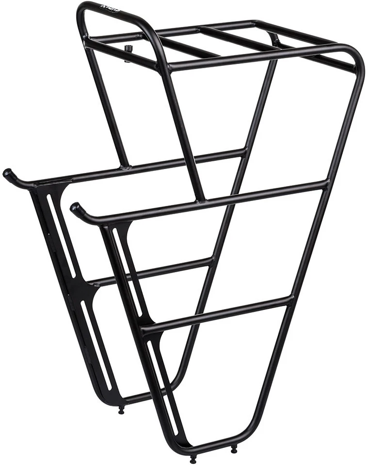 Technische Daten:Material:Stahl (4130, CroMoly)Maße (Plattform):230 x 170 mmDurchmesser (Rohr):10 mmZuladung (max.):32 kgLaufradgröße:26″ , 700C, 29″ RäderFeatures:passend für das Vorderradhöhenverstellbarer Gepäckträgerextrabreite Auflageflächemit den meisten Scheibenbremsen kompatibel (auch Troll-, Ocre- und Disc-Trucker-Rahmen)Herstellernummern:silver:RK0105black:RK0106Lieferumfang:1 x Gepäckträger Surly Nice Rack 2.0inkl. Befestigungsmaterial